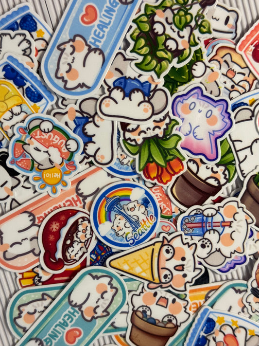 Mystery 1 inch Stickers Pack, 15 Mini Glossy Die Cut Sticker flakes
