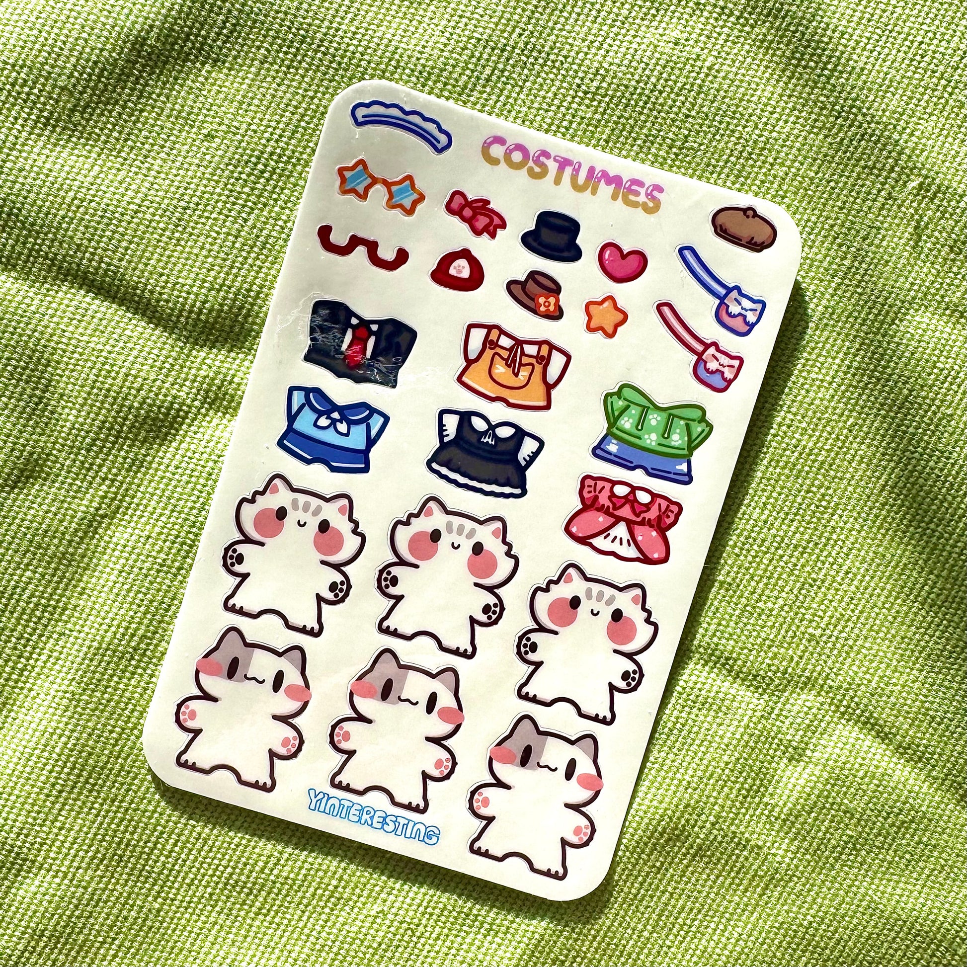 - 1x Costumes meow Sticker sheet Size about 3”W x 4.5”H - Laminated