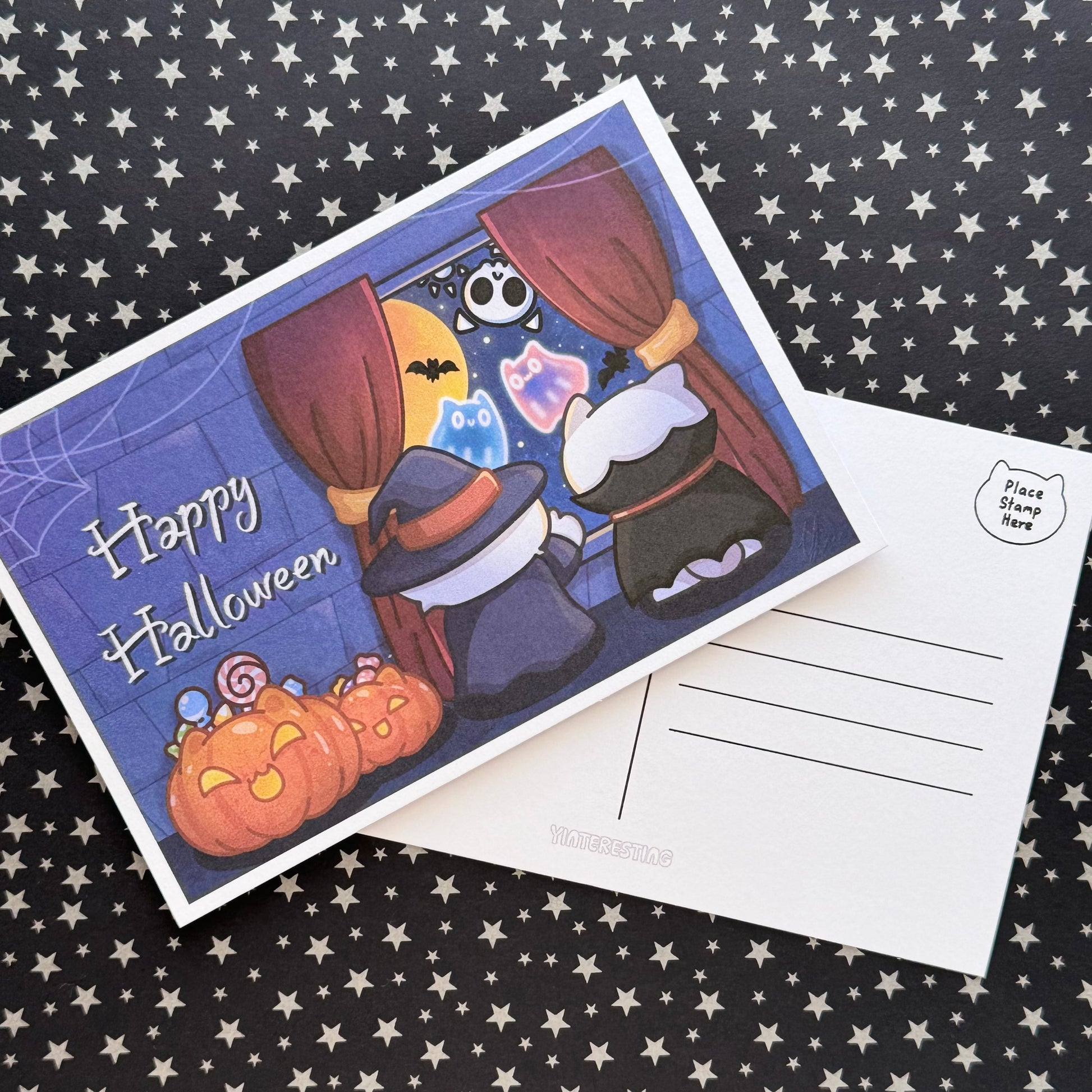 Halloween window Cat Stickers and postcard