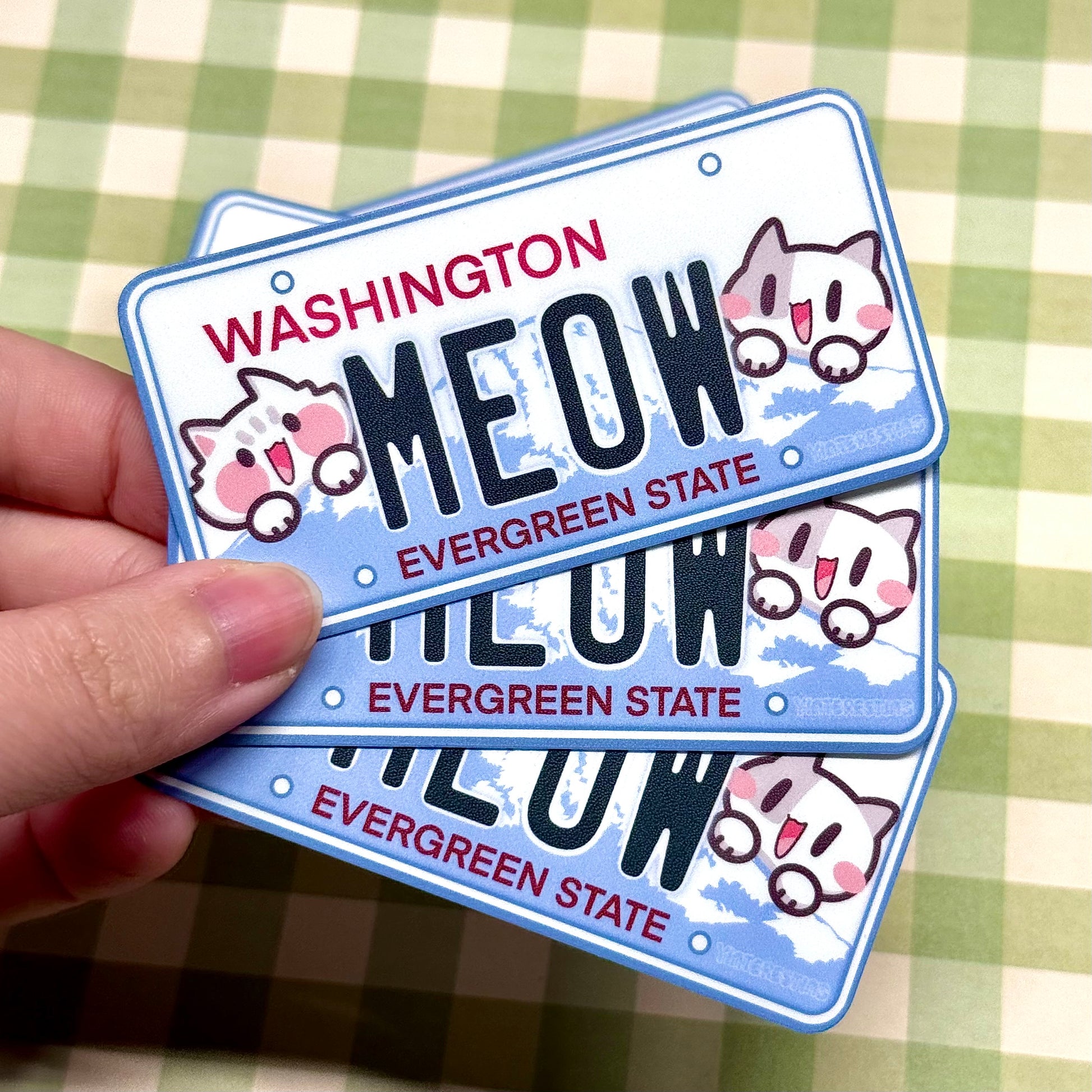- 1x Washington License plate meow sticker